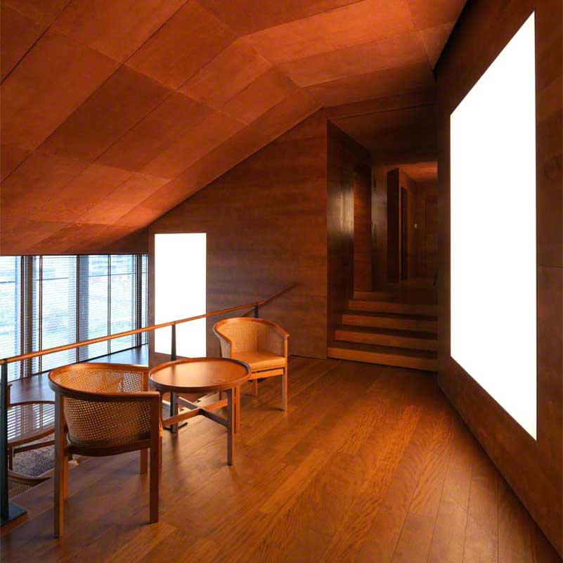 “Barrisol® lysfelterne skaber en intim og let stemning i de klassisk indrettede rum, hvor træ er det gennemgående element.”
